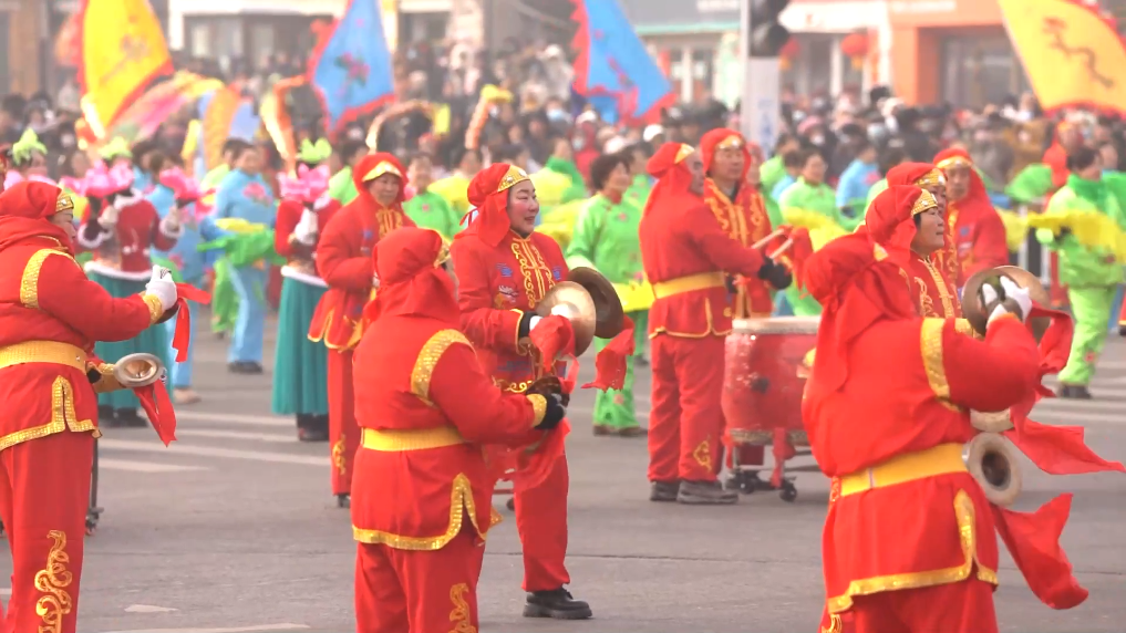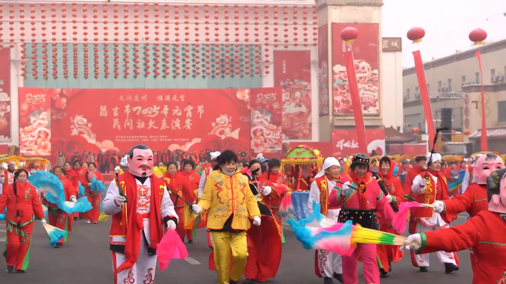 2月12日上午,新疆昌吉市街道上锣鼓喧天,龙腾狮舞。以“文润庭州 福满元宵”为主题的元宵节民间社火表演赛正在火热进行。来自新疆生产建设兵团和昌吉市8个乡镇和街道的9支代表队,共6000余名民间社火表演队队员,为各族群众献上了一场精彩纷呈的文化盛宴。