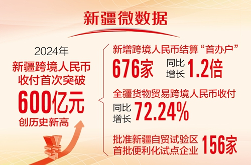 截至2024年末,新疆辖区商业银行为12家境外银行新增开立人民币同业往来账户,与周边国家跨境人民币收付同比增长38.65%。