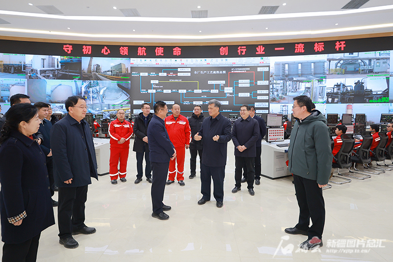 2月17日,自治区党委书记、兵团党委第一书记、第一政委马兴瑞来到位于铁门关经开区的新疆新冀能源化工有限公司,了解兵地资源共享,共同培育优势产业、推动高质量发展情况。石榴云/新疆日报记者 崔志坚摄
