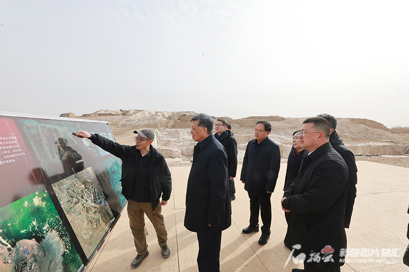 2月17日,自治区党委书记、兵团党委第一书记、第一政委马兴瑞来到位于轮台县的卓尔库特古城遗址,详细了解遗址整体情况。石榴云/新疆日报记者 崔志坚摄