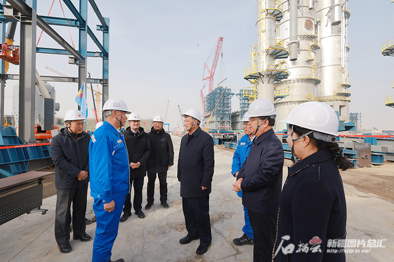 2月17日,自治区党委书记、兵团党委第一书记、第一政委马兴瑞在巴音郭楞蒙古自治州轮台县、库尔勒市和兵团铁门关市调研。这是马兴瑞来到位于库尔勒上库高新区石油石化产业园的中石油独山子石化公司120万吨/年二期乙烯项目建设现场,详细了解施工情况。石榴云/新疆日报记者 崔志坚摄