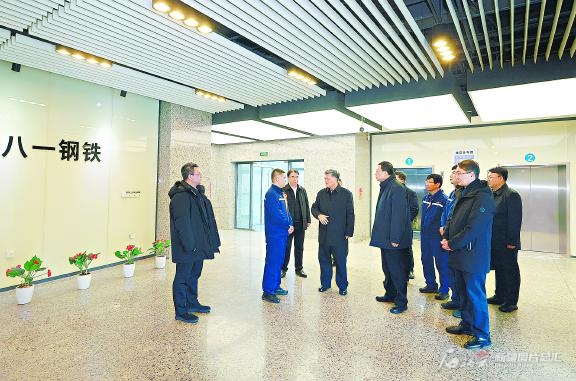 在八一钢铁公司,马兴瑞视频察看车间运行实况,听取企业生产经营情况介绍。他强调,要进一步发挥新疆区位、市场、资源等优势,持续解放思想、改革创新,瞄准高端化、智能化、绿色化方向,加快推动企业提质升级,在服务高质量发展中发挥更大作用。要更好把握新疆特色优势产业发展的用钢需求,大力强化科技创新,精准调整产品结构,加大高端钢材、特种钢材的研发和生产力度,不断提升产品市场竞争力。要立足区域资源优势,持续提升主要原材料自给能力,深耕新疆市场,积极拓展中亚等周边国家市场,加快提升企业发展效益。要积极服务天山北坡城市群大气环境整治,深入推进污染物排放治理,巩固超低排放改造成果,不断释放工艺装备、环保绩效、能效水平高的先进产能,加快推动绿色低碳发展。