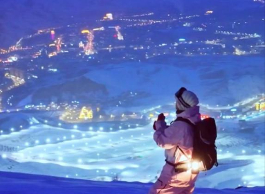 近日,在新疆阿勒泰市将军山国际滑雪度假区,夕阳的余晖隐没于群山之后,将军山滑雪场进入绝美蓝调时刻。滑雪爱好者聚在山顶,尽享澄澈与安宁。