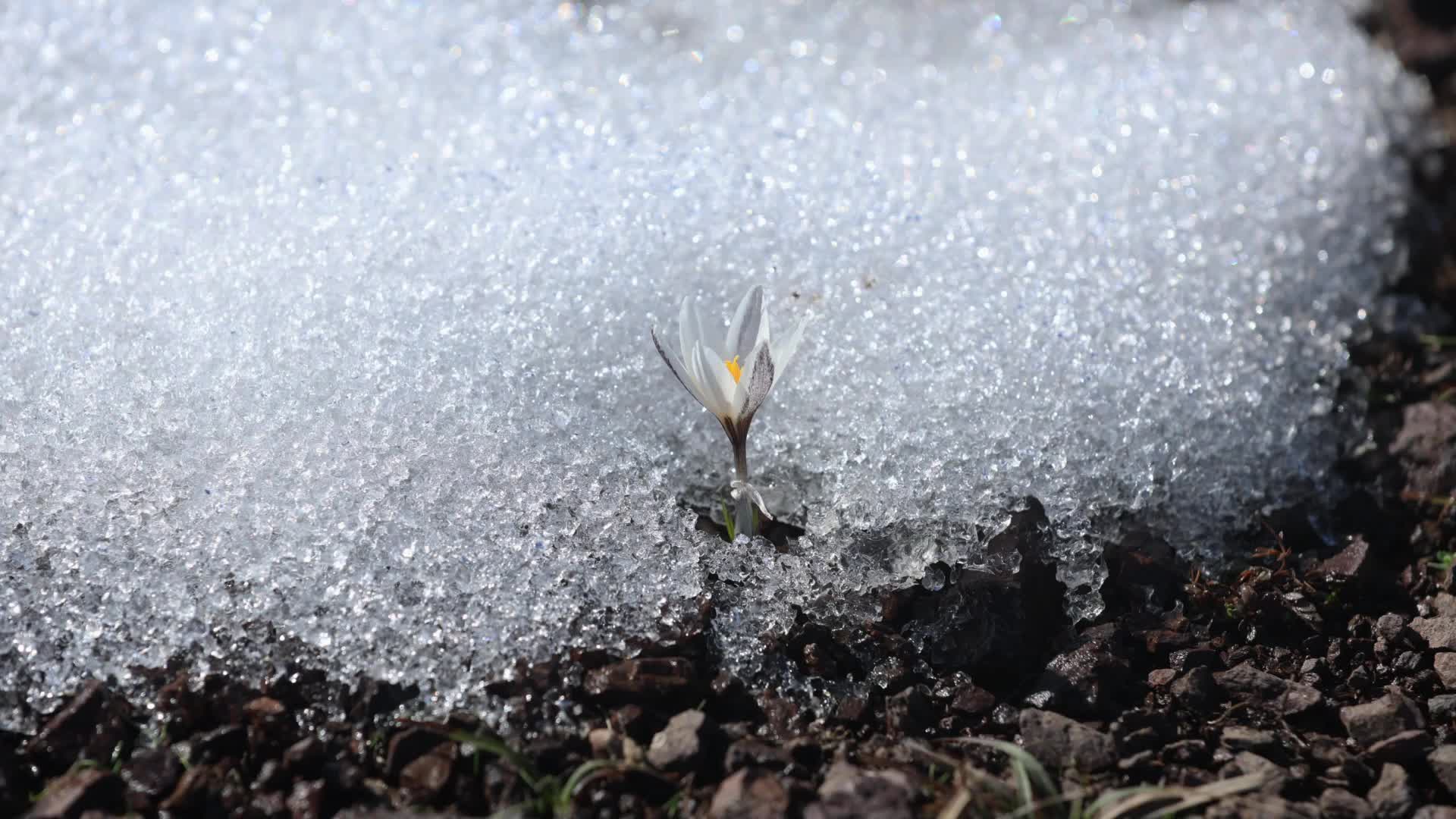 近日,在新疆察布查尔县孙扎齐镇郎喀村,一场生命的奇迹正在上演!白番红花顶冰盛开,以顽强的生命力破冰而出,傲然绽放,为早春增添了一抹温暖的色彩。