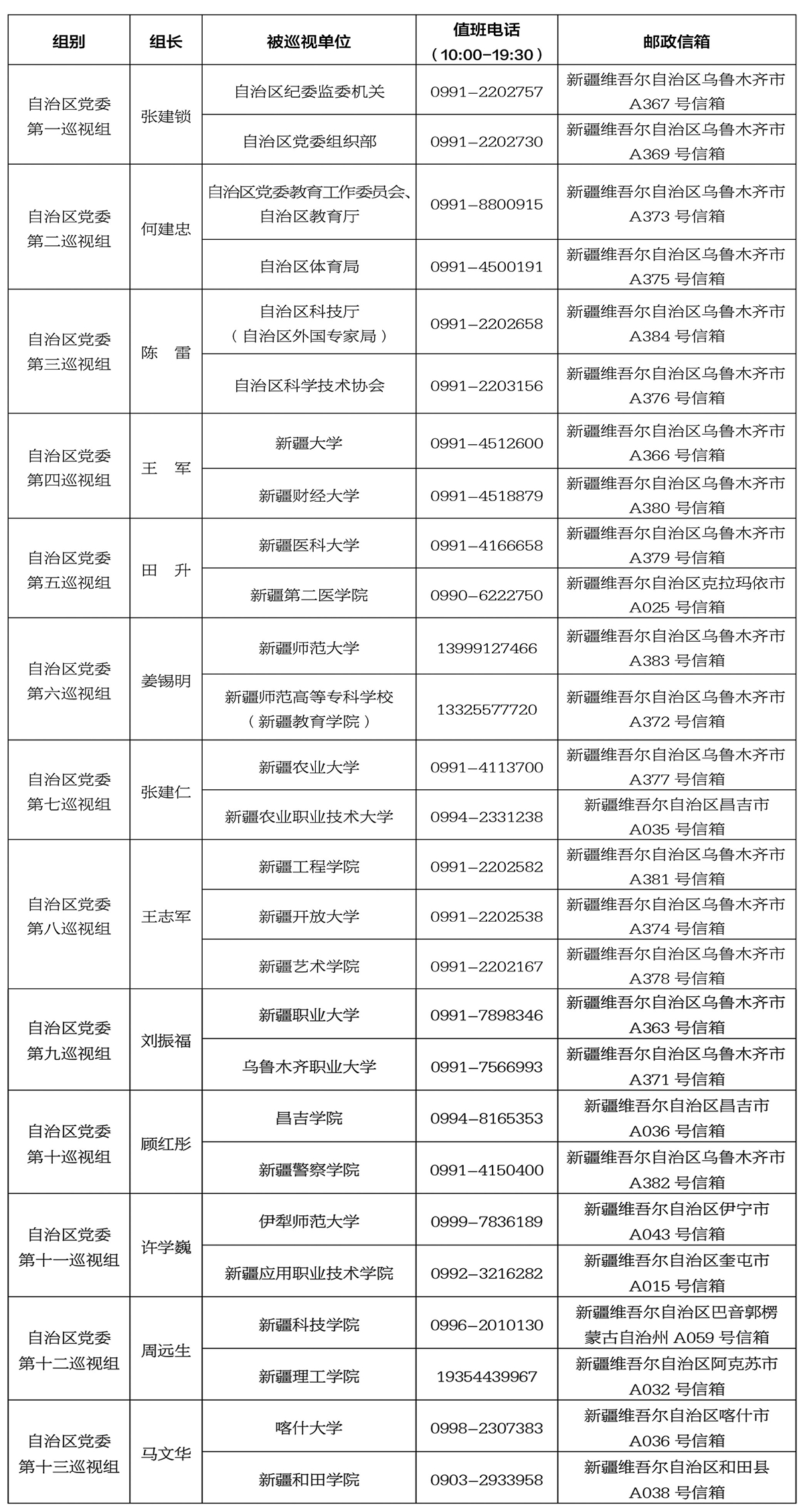 十届自治区党委第七轮巡视进驻一览表