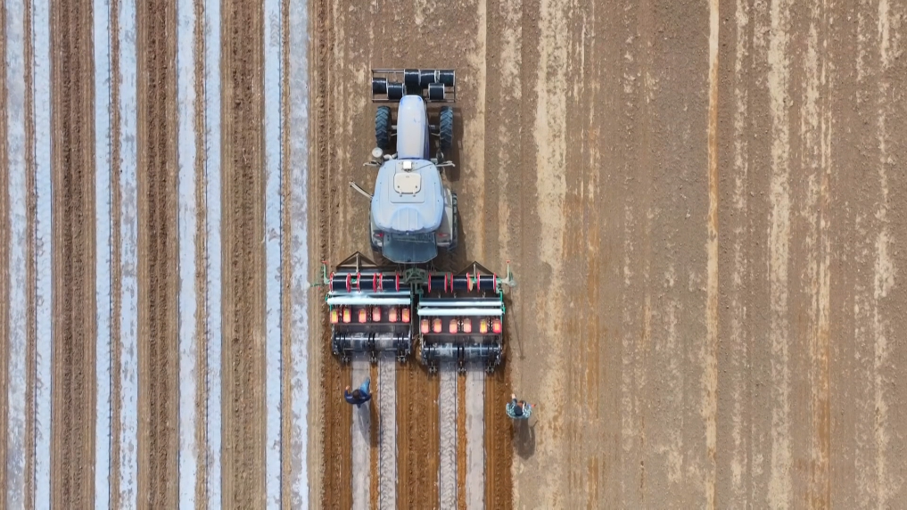 眼下,随着气温转暖,新疆各地陆续进入棉花播种期。天山南北成千上万亩的棉花地里,机械化种植全面铺开,场面壮阔。