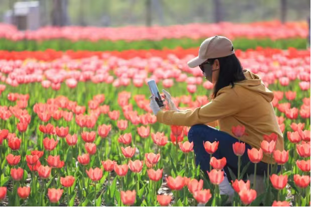第六师五家渠市地处天山北麓东段,辖区旅游资源丰富,拥有高山草原、沙漠湖泊、军垦文化、观光农业、古城遗址、丝绸之路古迹和民族风情等。五家渠,被誉为“西域水城 丝路花都”和新疆首府的后花园,是一座国家级“园林城市”,城市绿化率达到45.6%。自2005年引种郁金香至今,通过二十年精耕细作,突破传统赏花模式,形成350万株郁金香规模,涵盖30余品种、8大展区,打造集生态美学、沉浸体验、文旅融合于一体的全域文旅新地标。青格达湖畔100亩特色花海,重瓣型、饰边型等珍稀品种,构筑成西北最大郁金香主题景观带。如今,郁金香文化旅游节已经成为六师五家渠市旅游品牌的一张“金字招牌”。(图片来源:青格达湖旅游度假区)