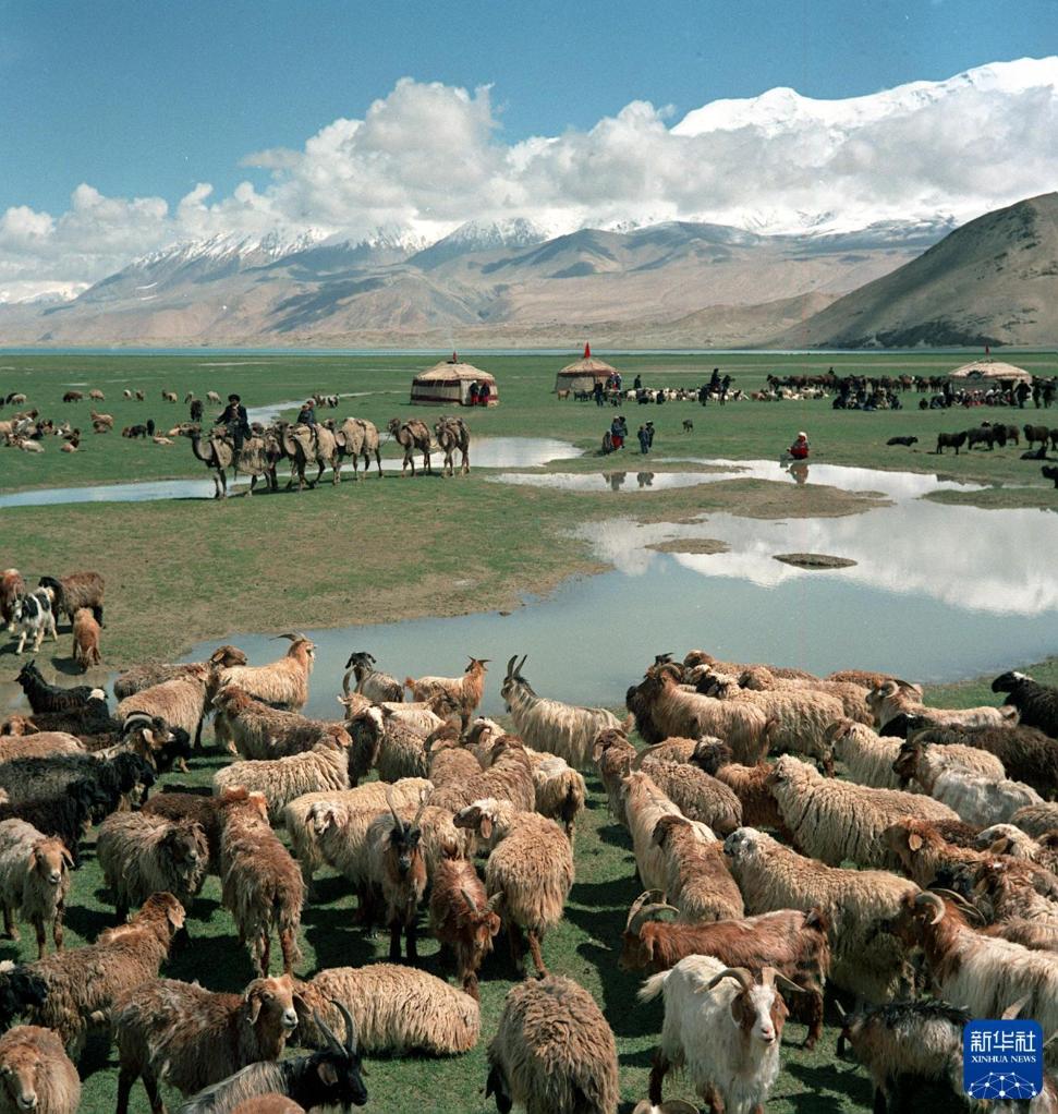 新疆分社当时有位摄影记者艾海提,是维吾尔族人,他是老记者了,我就跟着他去采访。记得当时我们去采访牧民转场,就搭了一辆运货的便车。到了山下,车子开不进去,剩下的路我们就自己爬上去。我和他两个人,大夏天背着摄影器材,然后一人还扛一件皮大衣。夏季到山上、草原深处采访,万一刮风下雨天气还是会很凉,所以棉衣、皮大衣什么的还是要备着的。