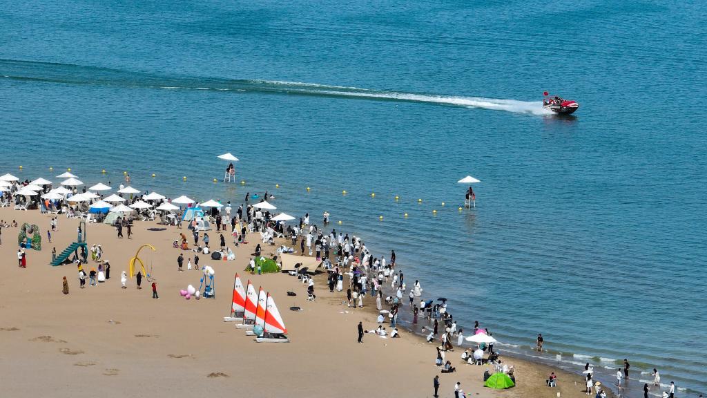 “五一”假期,新疆巴音郭楞蒙古自治州博湖县境内的博斯腾湖景区迎来旅游高峰。博斯腾湖是全国最大的内陆淡水湖,水域面积1646平方公里,拥有丰富的水产、芦苇、湿地等自然资源和丰富的旅游资源。博湖县以碧波万顷的湖光、金沙绵延的“西海沙浪”和丰富的水上娱乐项目,吸引全国游客纷至沓来,成为新疆旅游的热门打卡地之一。