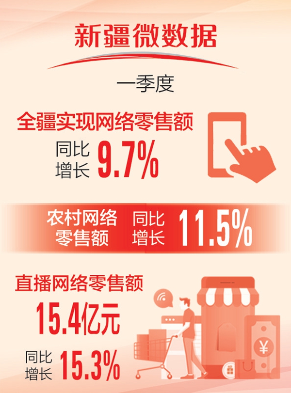 记者从自治区商务厅获悉:一季度,新疆持续深化提振消费专项行动,依托电商平台释放消费潜力,通过组织参与“全国网上年货节”等系列活动,推动网络零售市场稳步增长,全疆实现网络零售额同比增长9.7%,消费活力进一步显现。