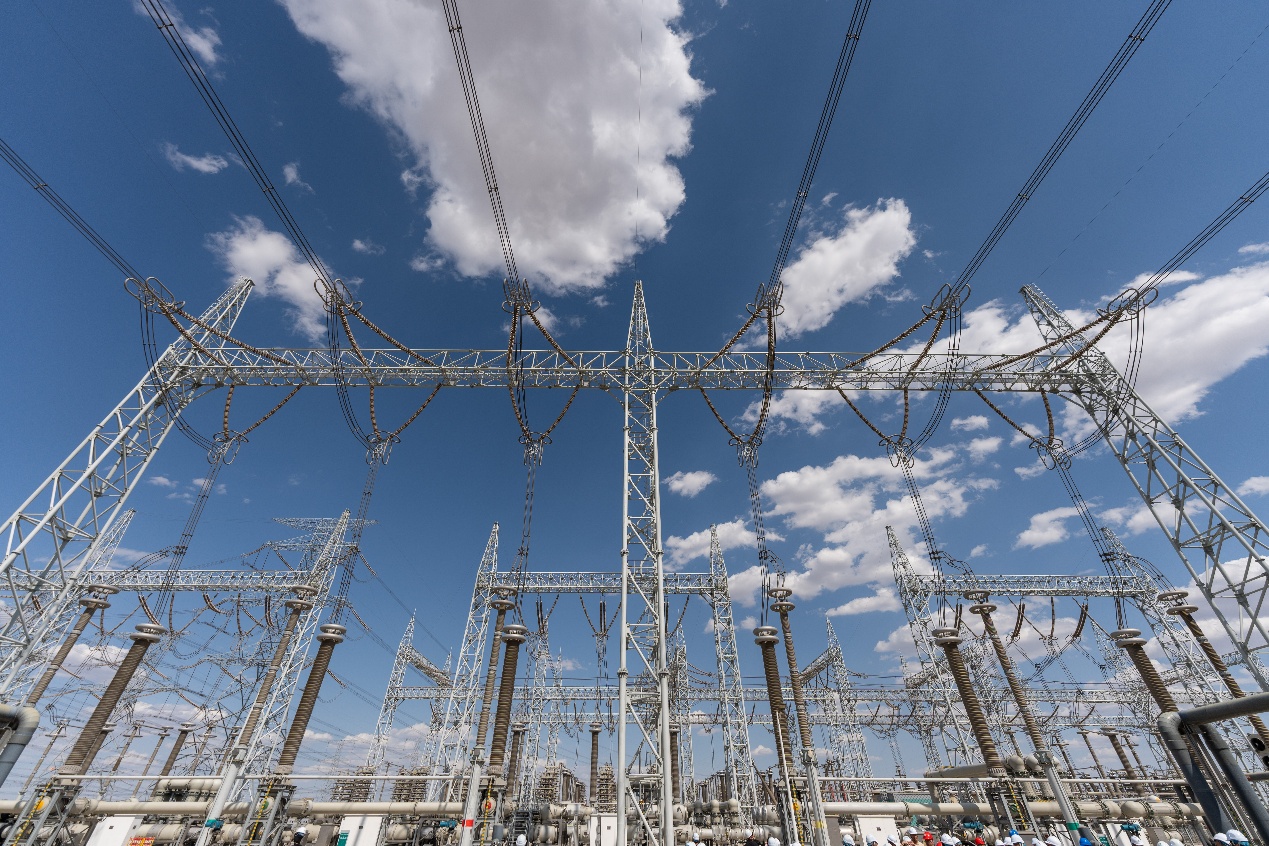 昌吉—古泉±1100千伏特高压直流输电工程昌吉换流站,铁塔耸立,银线纵横。新华社记者徐宏岩摄