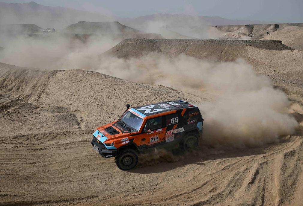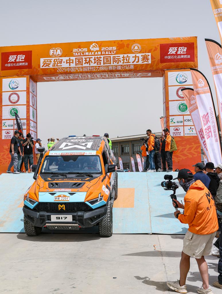 5月20日,纵横G700车队车手孟斌、领航员李智峰驾驶新能源组赛车在发车仪式上。