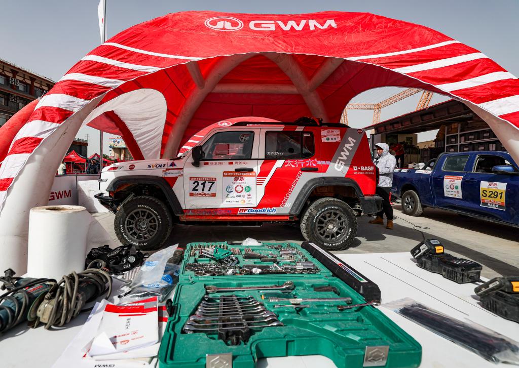 5月20日,长城坦克Hi4车队的两辆新能源组赛车(左一、左二)在发车仪式上。