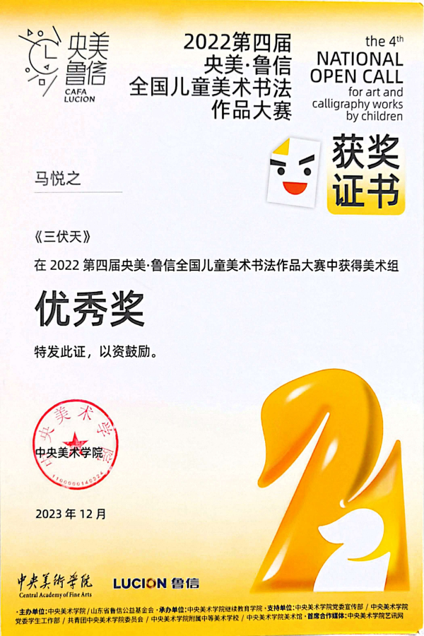 马悦之是新疆教育学院实验小学六年级三班的学生。她自幼酷爱绘画,自幼儿园首次个展后便展现出非凡的艺术天赋。在实验小学"全面发展"教育理念的滋养下,六年间她以惊人的创造力完成了近五百幅作品:从稚趣盎然的儿童画到气韵生动的水墨,从灵动洒脱的速写到前沿的数字绘画,多元探索中始终贯穿着对艺术的赤诚。其作品二十余次入选中国美术家协会、中央美术学院等权威机构展览并屡获嘉奖,这份成绩单背后,是日夜执笔的坚持与师长的悉心栽培。