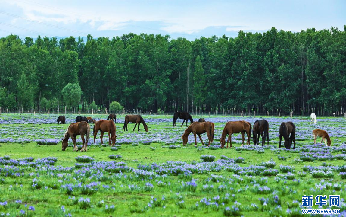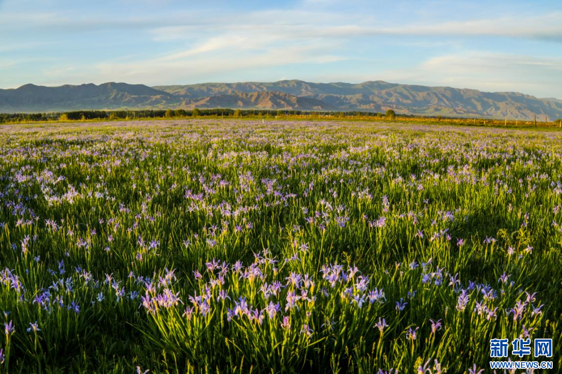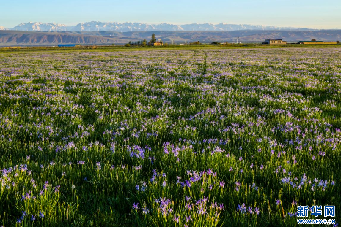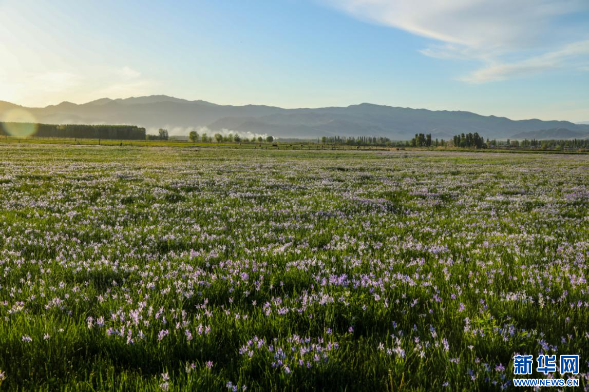 近日,新疆新源县肖尔布拉克镇洪吐拜村牧业组的春草场上,马兰花正肆意绽放。一簇簇、一丛丛马兰花,在微风中轻轻摇曳,如蓝色的绸带铺满大地。花瓣上的露珠折射着阳光,宛如撒落的碎钻,为这片草原增添了几分灵动与璀璨。远处,牛羊漫步其中,悠然觅食,与蓝色的花海相映成趣,共同勾勒出一幅迷人的草原夏日绝美画卷。