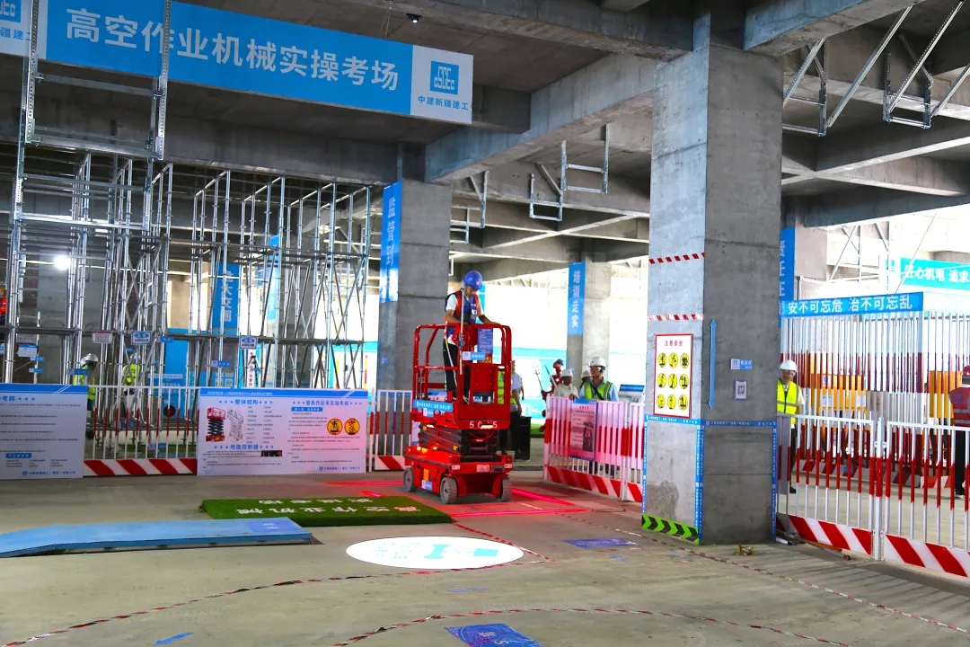 活动通过现场实景展示、经验解析与规范图集推广,展现了项目在安全生产领域的创新实践,为阿克苏地区建筑工程项目提供可复制、可推广的安全管理样板,全力推动行业安全文明施工水平提升。在中建新疆建工技术产品与智能机器人展区,高空作业车实操考试区域和安全检查工具包、地面整平机器人、顶棚打磨机器人、墙面涂料喷涂机器人、测量机器人等吸引众多参会者的目光,纷纷驻足观看。