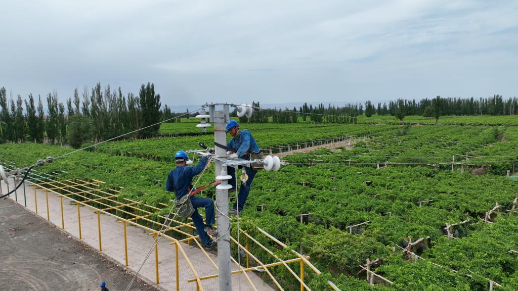 电力足才能产业兴。近三年,国网吐鲁番供电公司累计新建、改造新城西门村供电线路10余千米,新增配电变压器5台,预计可以满足未来10年用电需求,为农业种植、瓜果加工、电商销售等产业的发展提供了可靠电力支撑。