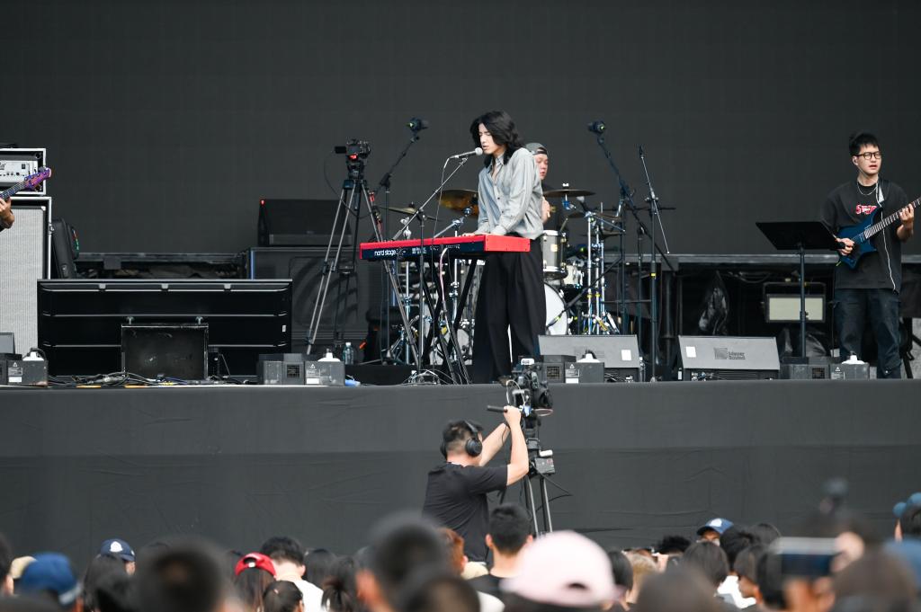 7月12日,演员在2025新疆超级草莓音乐节现场演唱。新华社 发(徐锐摄)