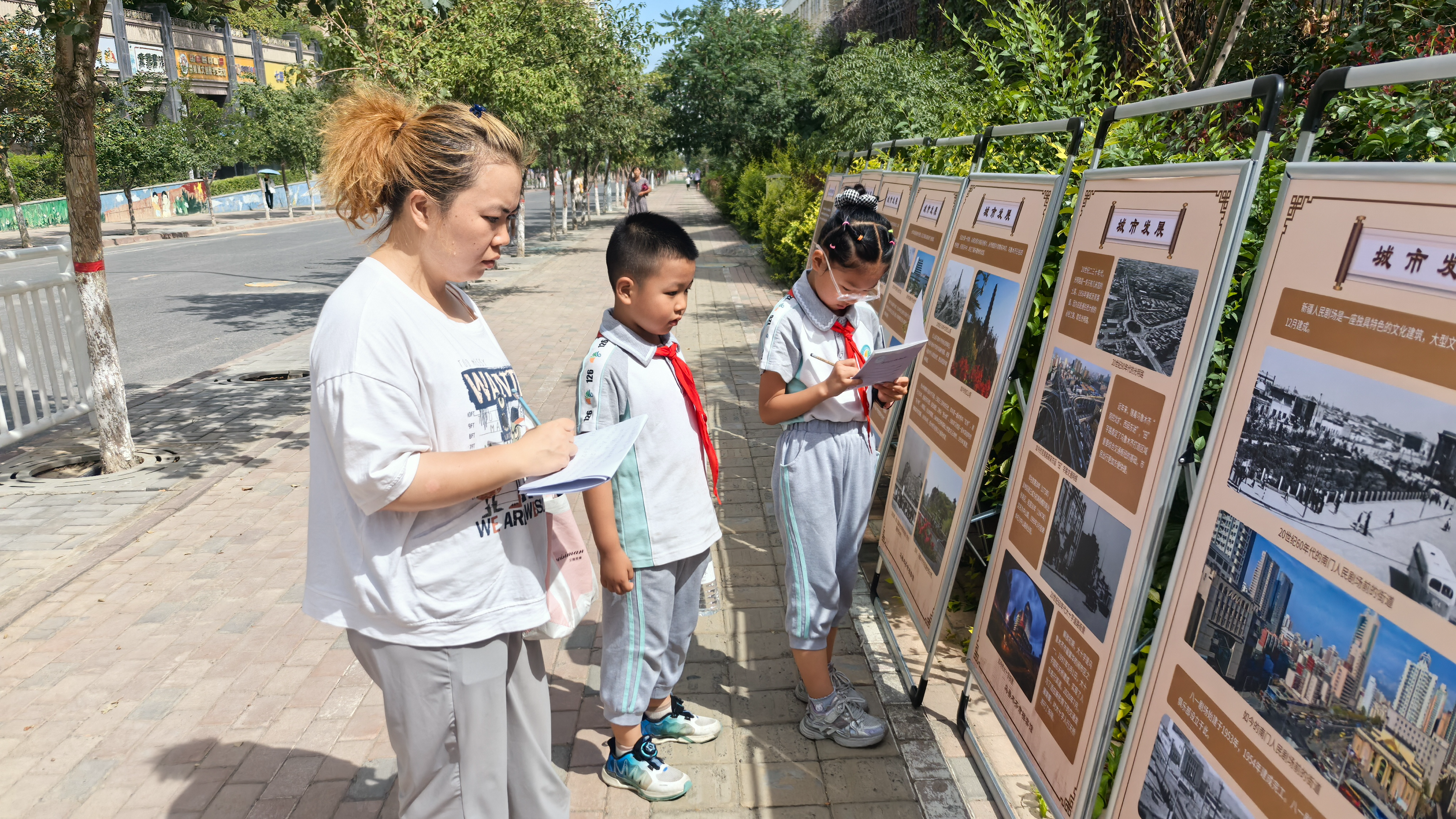 活动现场,市档案馆的乌鲁木齐历史展板依次排开,涵盖历史沿革、城市变迁、生活记忆等内容。党员同志、老人、居民们驻足观看,从珍贵档案里探寻城市发展脉络;学生与家长携手,拿着本子认真记录,在历史与现实的交织中,了解家乡过往。大家遵守现场秩序,文明参观,沉浸式感受自治区成立70年来的巨大变化。
