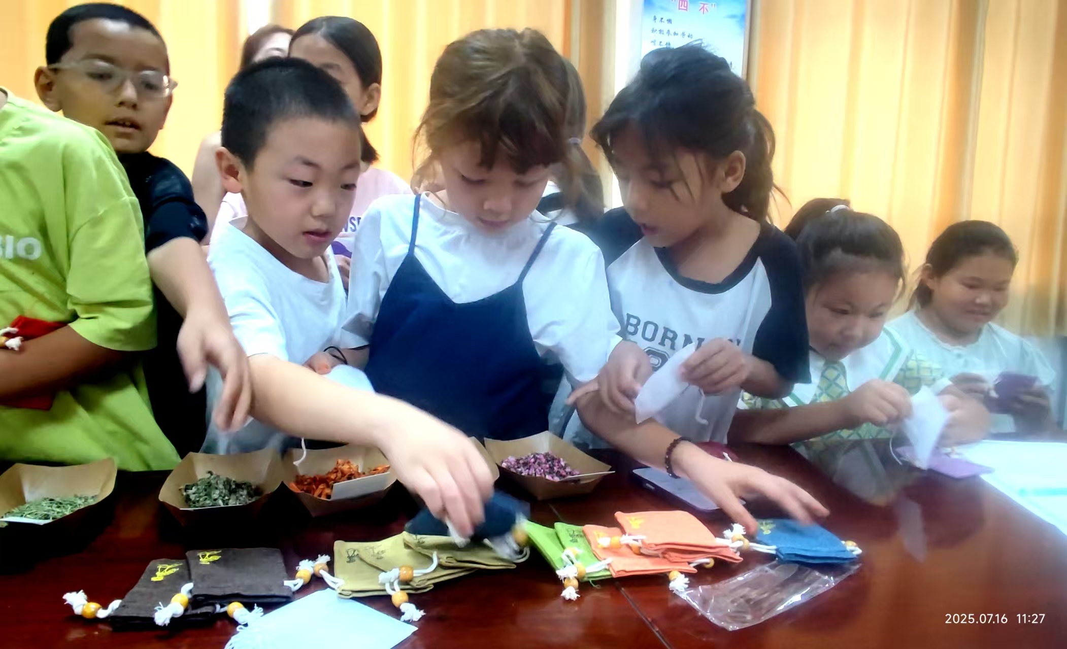 达西村的孩子们自己学做香囊