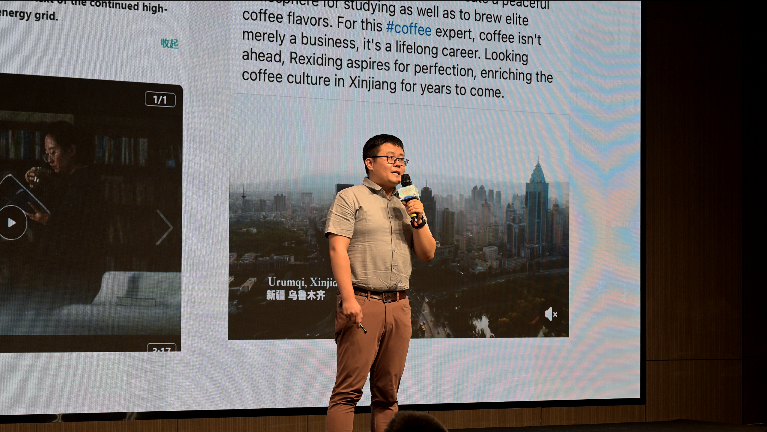 图为中国日报社新媒体中心副处长李畅翔进行分享。