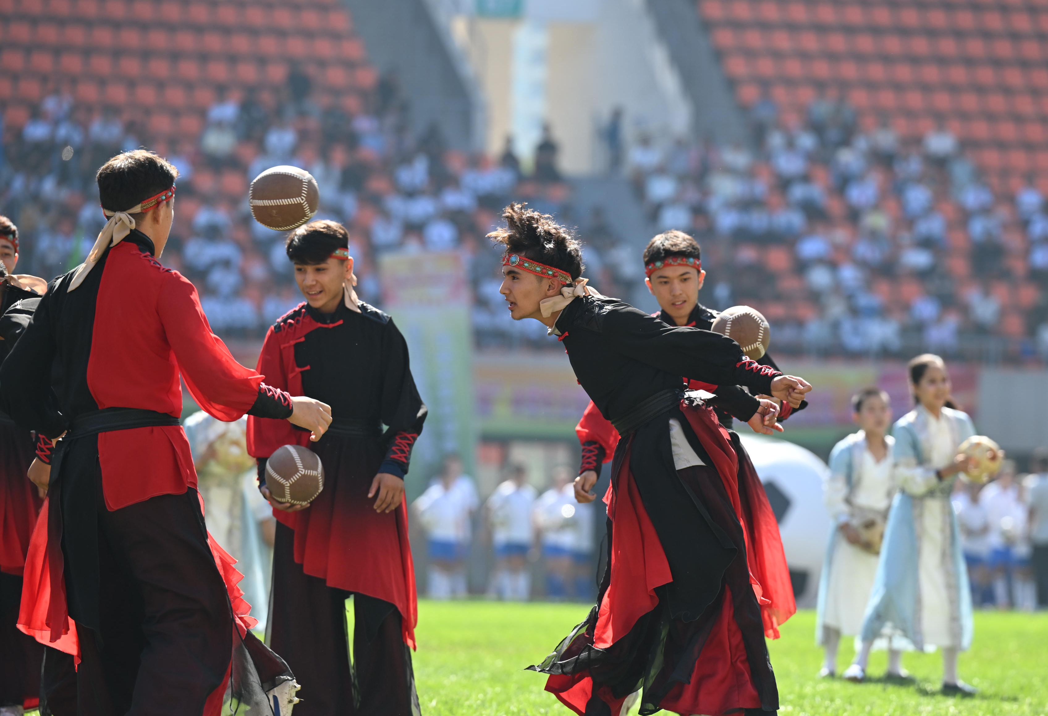 在12日举办的文艺汇演中,以“丝路情韵援疆梦·校园足印爱国情”为主题的节目表演精彩纷呈。演出分为《绿茵狂想·足跃山河》《鼓舞欢腾·武振乾坤》《逐梦同庆·丝路同心》《百花绽放·昌盛吉祥》四个篇章环节,通过展现中华民族一家亲的舞蹈、歌曲等,将各民族休戚与共、荣辱与共、生死与共、命运与共的共同体理念在年轻一代心中深深扎根。
