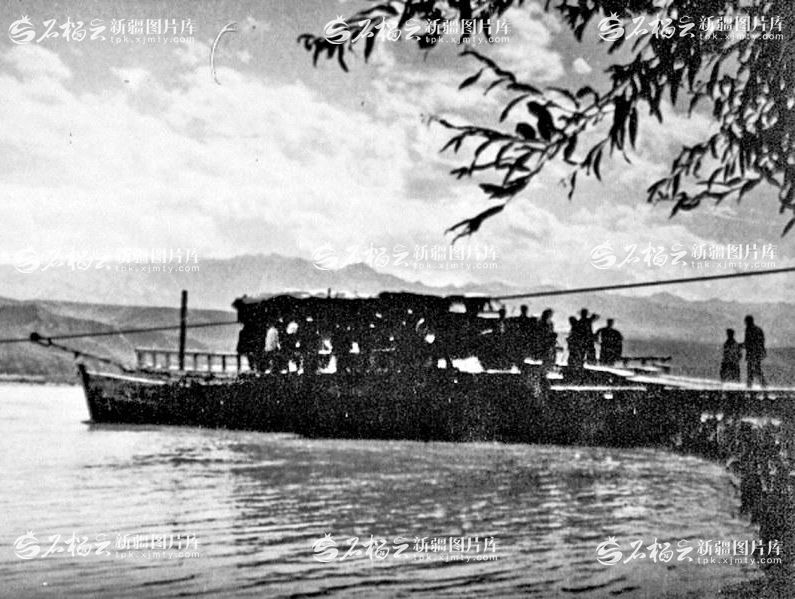 上世纪50年代的野马渡渡口渡船。新疆图片库 供图
