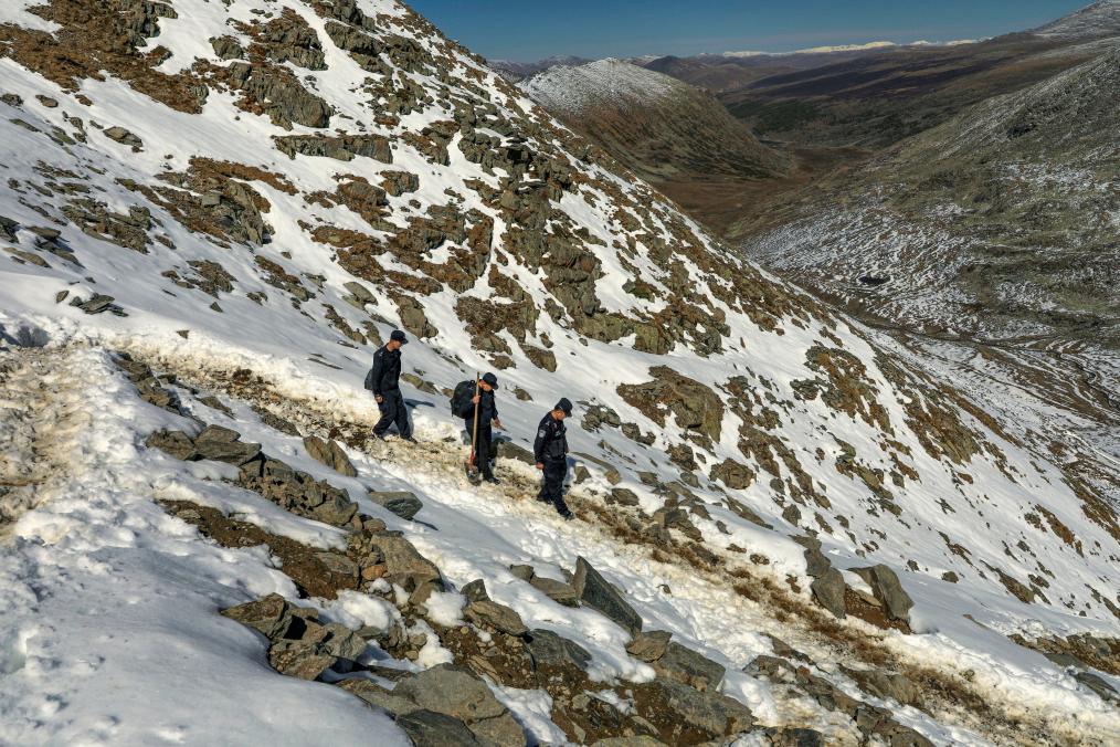 9月6日,新疆阿勒泰边境管理支队库尔木图边境派出所民辅警在诺尔特山区域巡逻。新华社发(叶尔江摄)