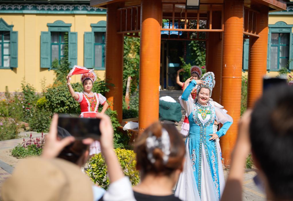 9月8日,游客在六星街观看表演。新华社记者 张浩波 摄