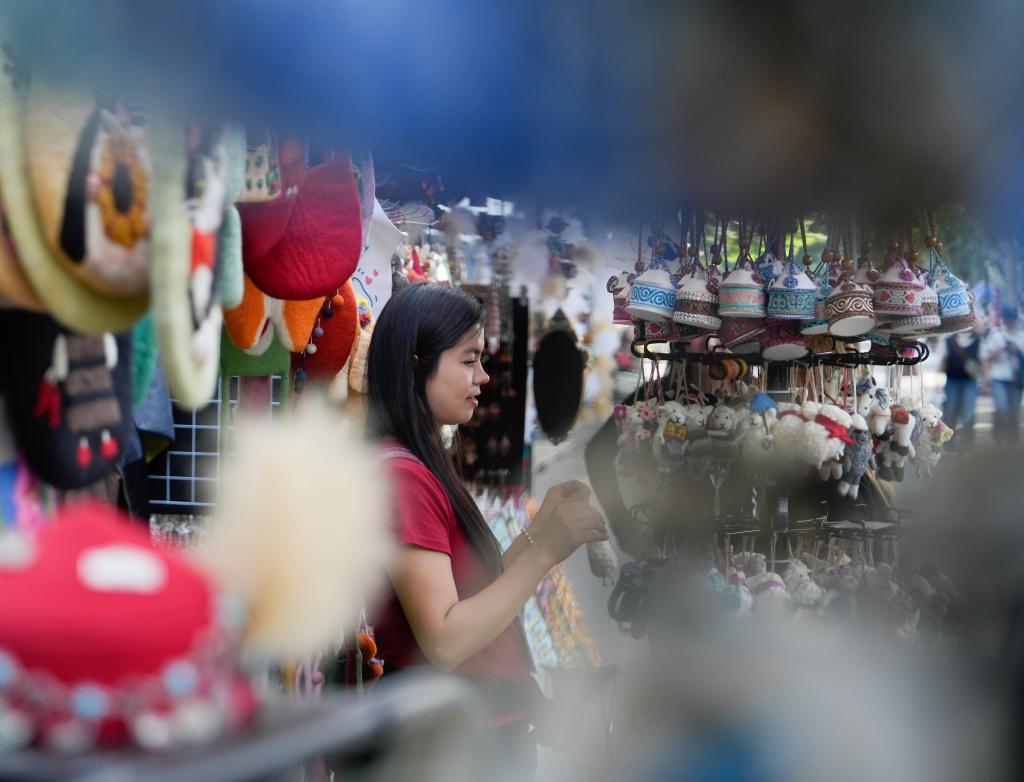 9月8日,游客在六星街选购纪念品。新华社记者 张浩波 摄