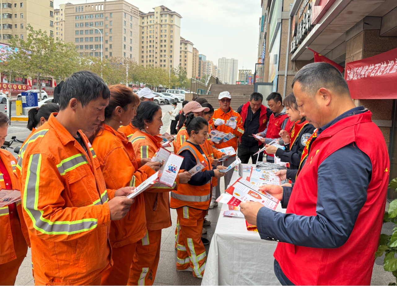 10月13日上午,在天柱山街饼司令工会驿站门口,香山街社区联合高铁街道工会联合会、街道司法所共同举办了“法护新业态 工会在身边”——环卫工人专场精准普法活动。来自辖区的20余名环卫工人参加了此次活动。