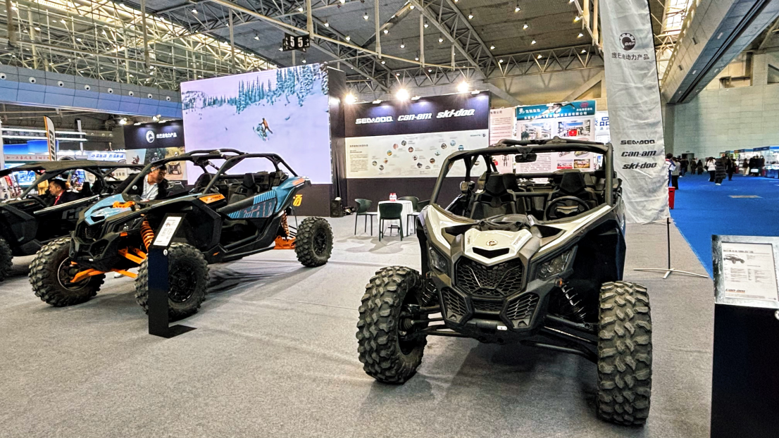 加拿大庞巴迪展区展示雪地摩托车。
