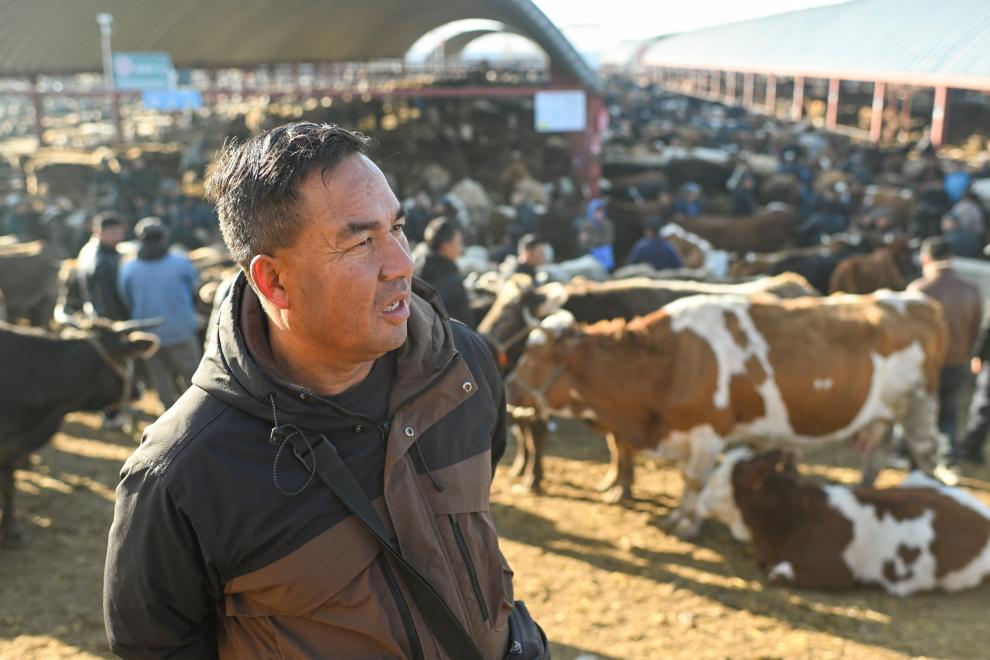 在新疆伊宁县的新疆创锦黄公农产品交易市场,牛羊成群围在栏中,牧民与牲畜经纪人大声商谈、击掌握手、买卖牲畜。这里又称“皇宫巴扎”,历史悠久,是新疆规模较大的活畜交易市场。目前,有超过3000名牲畜经纪人活跃于此,他们是连接牧场与市场的“纽带”——农牧民盼着以优价售卖牛羊等牲畜,但又难以直接接触到买家,不能准确把握市场行情;而各地的买家则希望高效、优惠地购入新疆高质量的牲畜。牲畜经纪人通过自己的经验和人脉,为农牧民与买家牵线搭桥,促成新疆优质畜牧产品销至全国,也助力繁荣乡村经济。