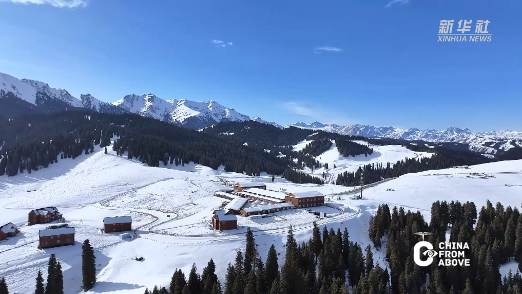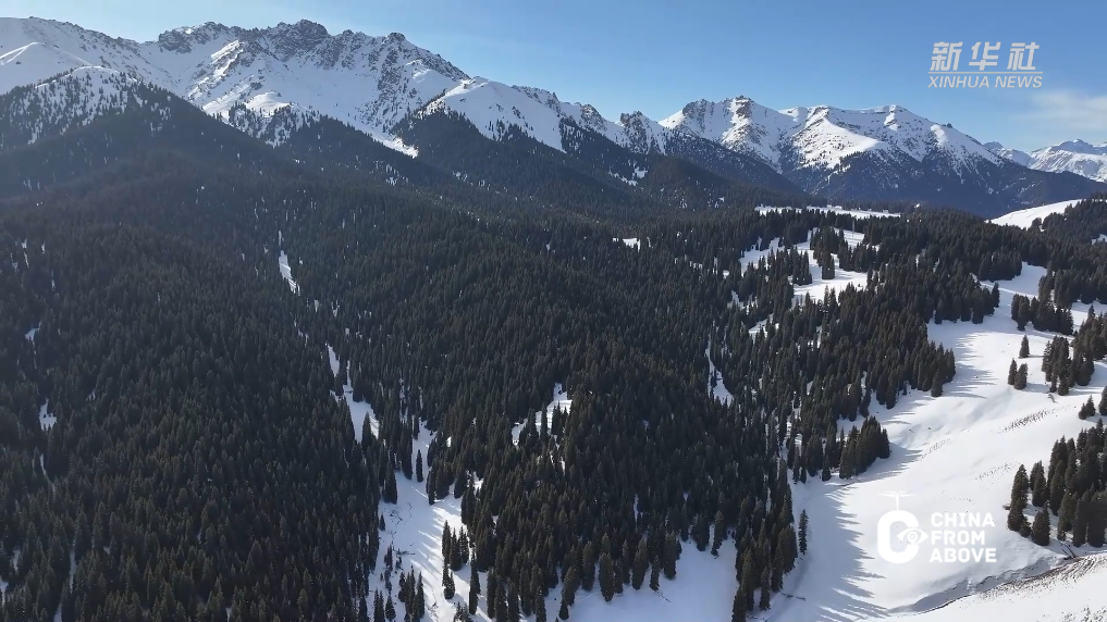 连绵的山峦披上了洁白的盛装,峰峦叠嶂间,雪色如纱漫卷;层叠的田地静卧于皑皑白雪之下,似千里素绢铺展,尽显大地的辽远与柔美。无垠雪野中,马儿悠然觅食,与远处苍劲的松林相映成趣。每一处风景都藏着江布拉克独有的浪漫,共同勾勒出一幅灵动而静谧的冬日画卷。