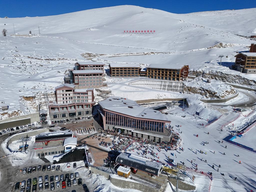 这是1月17日拍摄的新疆阿勒泰可可托海国际滑雪度假区(无人机照片)。新华社记者 胡虎虎 摄