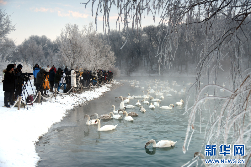 1993年11月,两只疣鼻天鹅带着3个孩子突然飞到夏合勒克村,落在了村民韩新林门口的鱼塘中。韩新林连续几天给天鹅投放食物,帮它们熬过寒冬。没想到,这个善意的举动,引来了越来越多天鹅年年到此过冬。从最初的一家五口,增加到如今超过1000只的庞大家庭。每年冬季,它们从远方如期而至,与这里的雾凇、晨雾和霞光,共同绘就一幅生命与自然相守的温暖画卷。