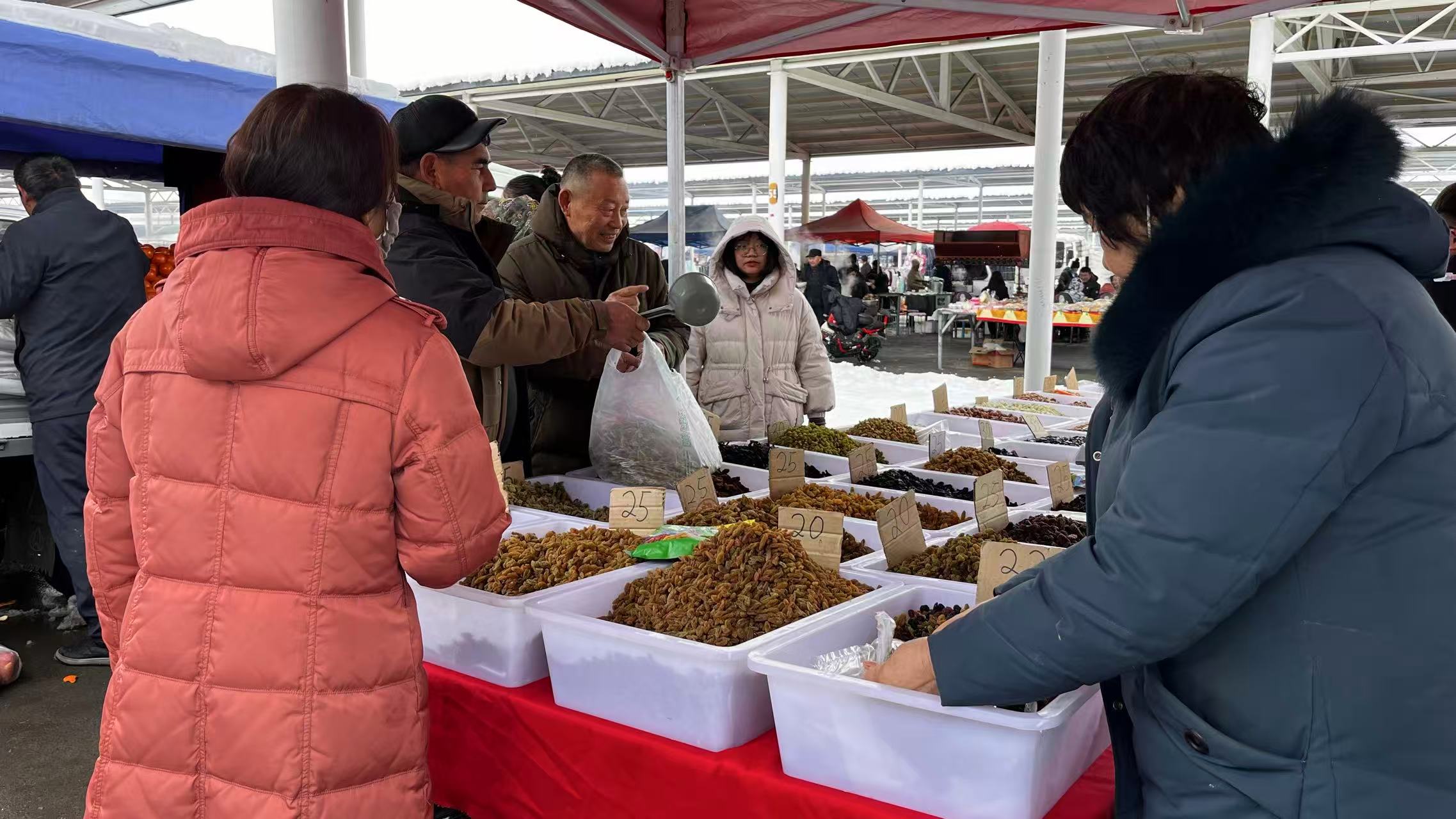 春节期间年味浓。趁着周末,新疆巩留县各大巴扎迎来年货采购高峰。琳琅满目的年货吸引群众陆续前来挑选,处处洋溢着喜庆热闹的节日氛围。各族群众穿梭其间,选购心仪年货,喜迎新春佳节。