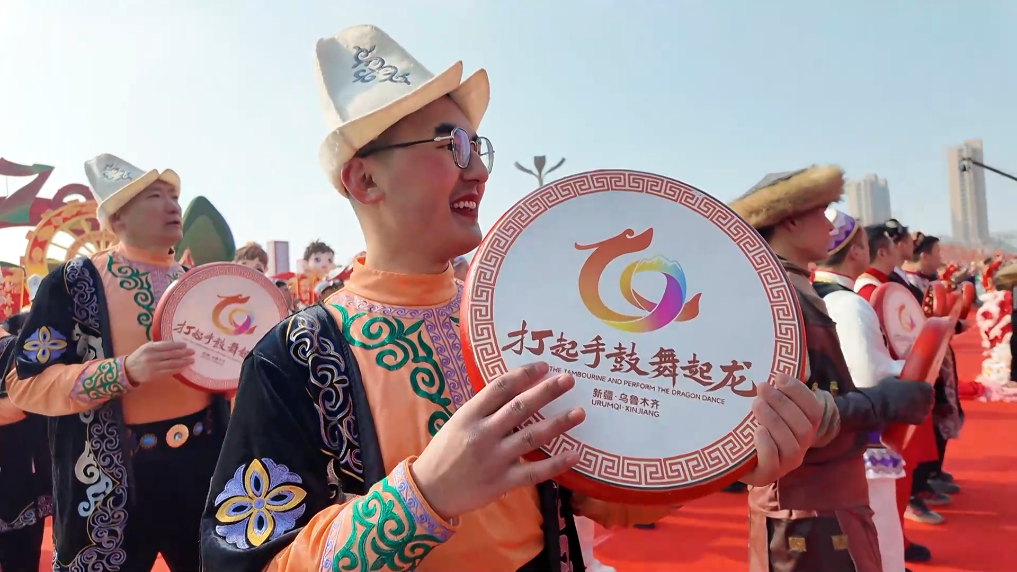 2月26日,新疆乌鲁木齐市锣鼓喧天、人潮涌动,第二届“打起手鼓舞起龙”社火巡游活动在乌鲁木齐文化中心片区精彩上演。