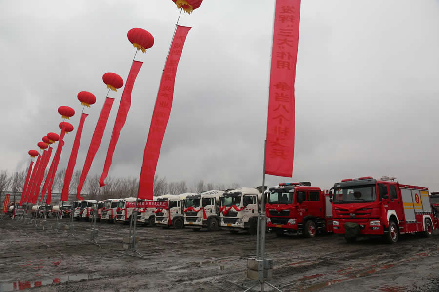 开复工仪式现场,工程车辆整装待发。新华网发 张广纯摄