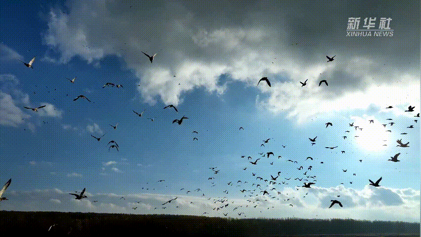 眼下正值候鸟迁徙季节,新疆博尔塔拉蒙古自治州温泉县野鸭湖迎来了大批绿头鸭、天鹅等候鸟。