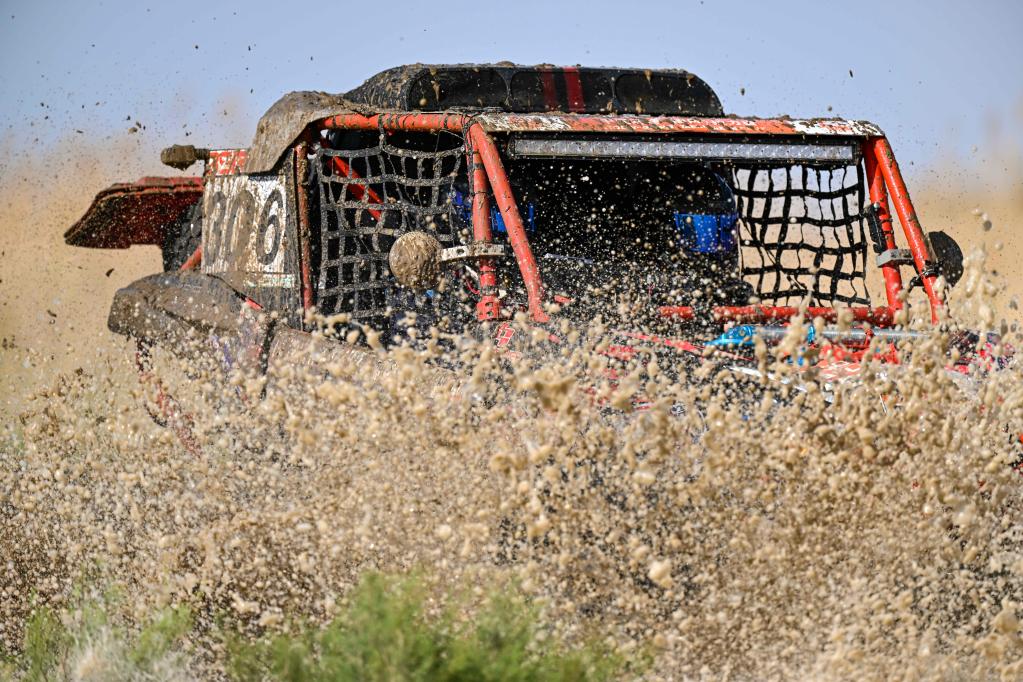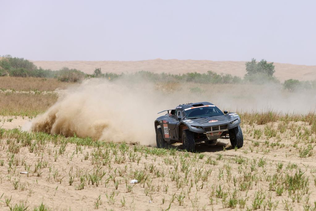 5月29日,陕西云翔汽摩运动有限公司车手张国宇、西班牙领航员奥里奥尔驾驶赛车在比赛中。新华社记者 胡虎虎 摄