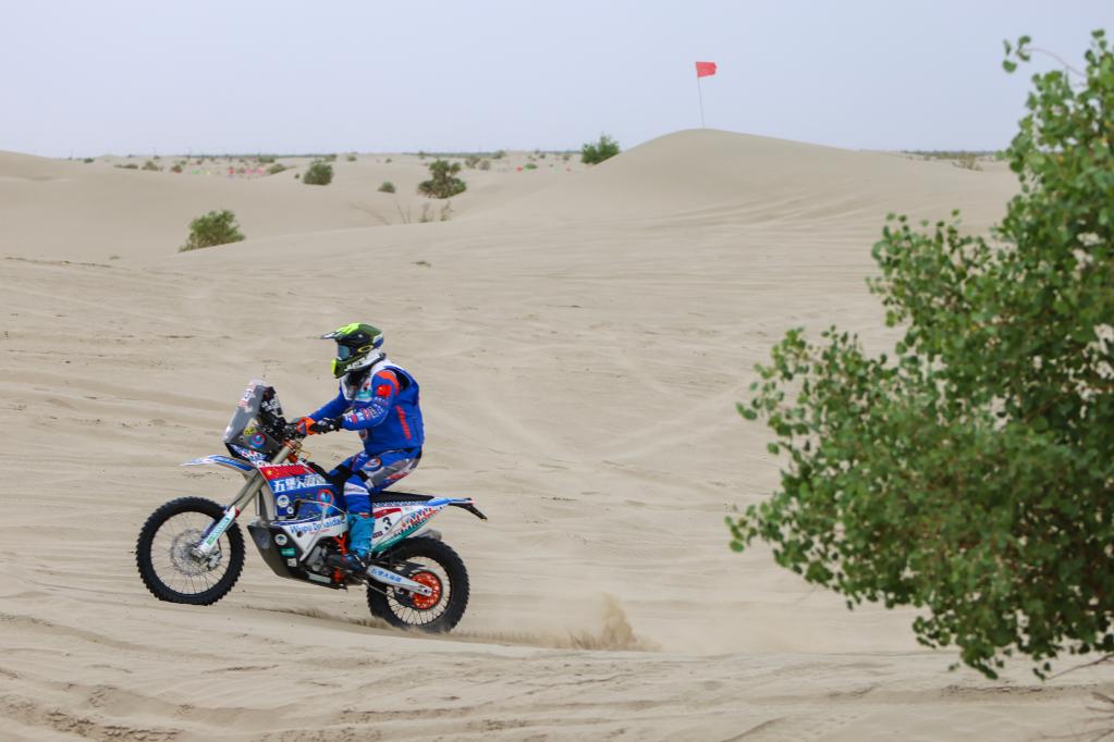 这名新疆本土摩托车手在刚刚落幕的2023中国环塔(国际)拉力赛摩托车组中,位列总成绩第三名,仅次于两名外籍车手。