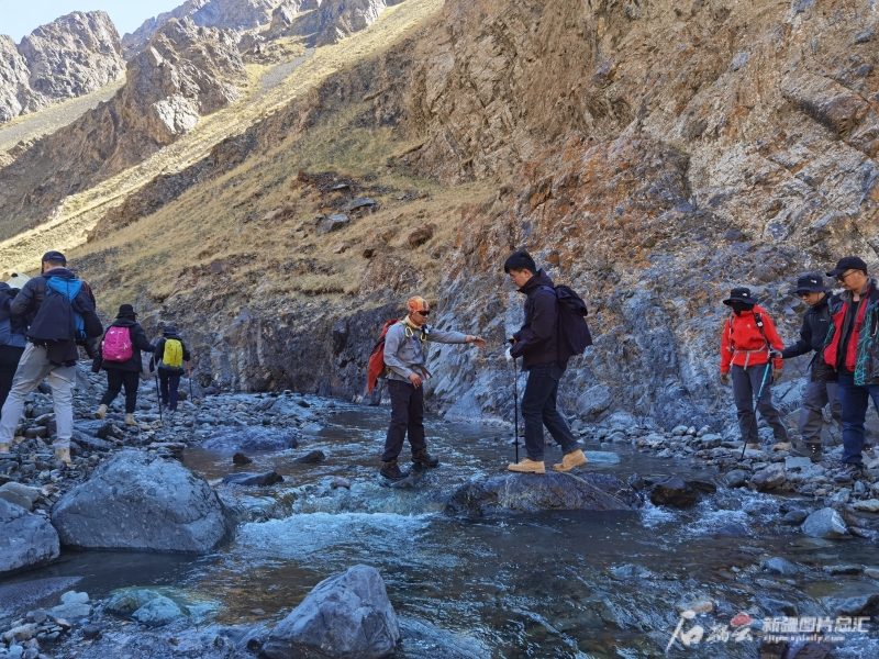 考察队在车师古道上需要过数条冰河。刘萌萌摄