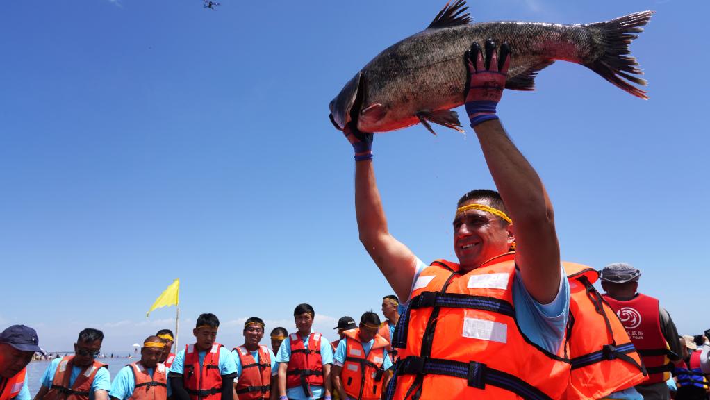 位于新疆巴音郭楞蒙古自治州博湖县境内的博斯腾湖是我国最大的内陆淡水湖,也是新疆最大的渔业生产基地。每年禁渔期结束后,当地都会举行盛大的开湖仪式,促进渔业和旅游业融合发展。独具特色的美景、丰富多彩的民俗活动以及绿色有机的农产品,吸引游客慕名而来。新华社记者 张啸诚 摄