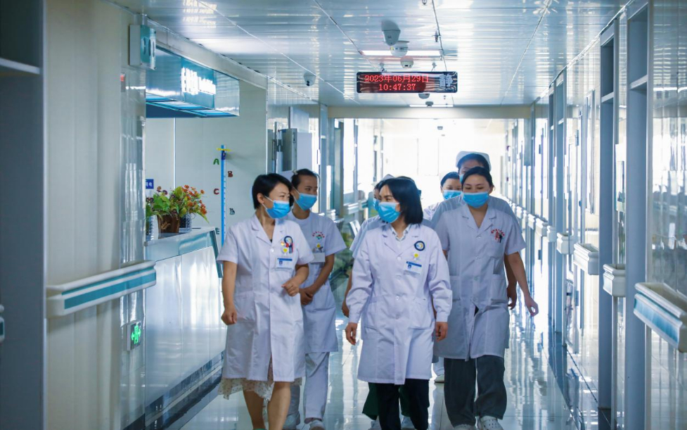 6月29日,在精河县人民医院住院部,精河县人民医院妇产科主任、湖北援疆专家佘小艳正带领着科室医生和护士们进行晨间查房工作。
