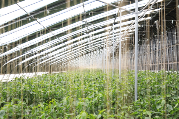 7月11日,在阿克苏市喀拉塔勒镇尤喀克阿勒迪尔村的日光温室基地,一座座日光温室错落有致地排列,村民吐尔逊古丽·阿吾东带着村民,正在日光温室内移栽西红柿、采摘辣椒。