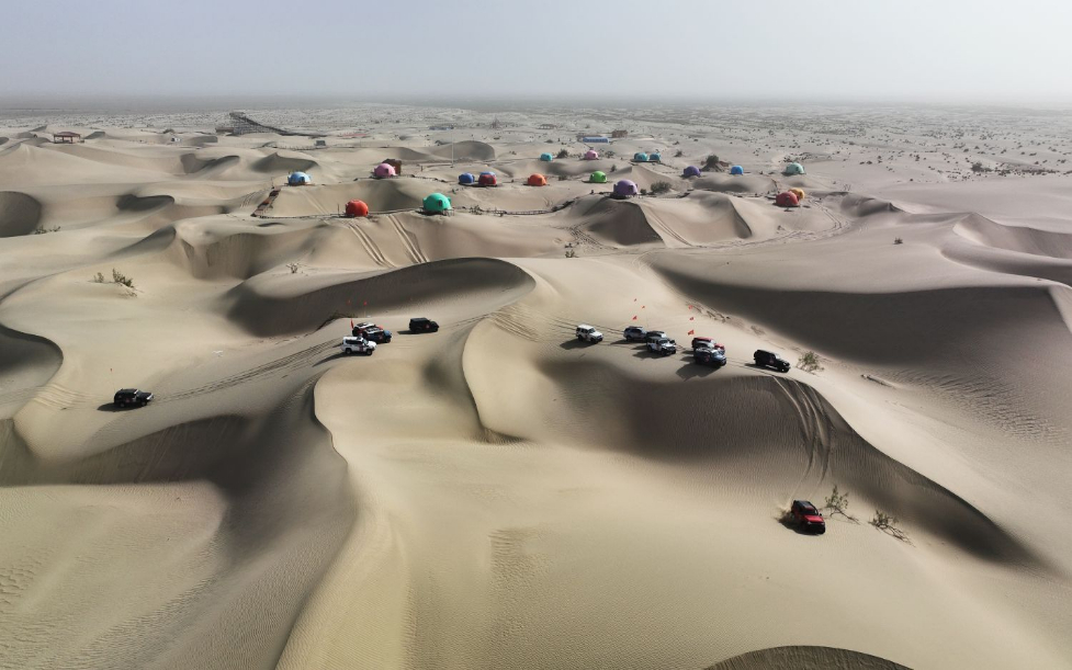 车辆驰骋在阿拉尔沙漠之门景区。 王拓 摄
