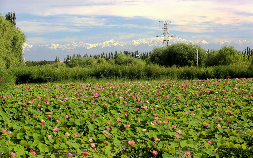 阿克苏国家湿地公园荷花盛开。 颜寿林 摄