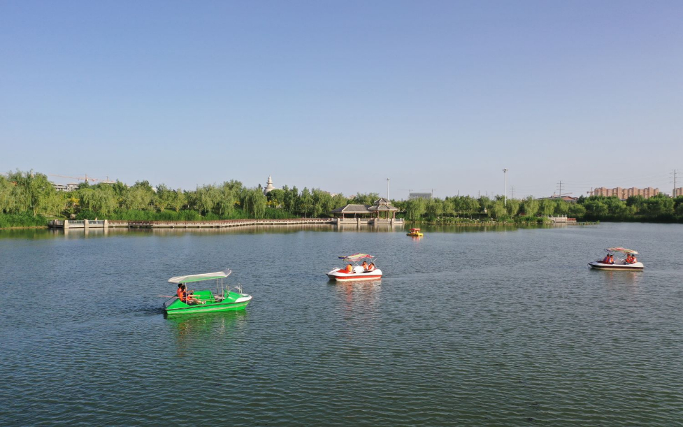 游客在阿克苏市多浪河划船。 刘莉 摄