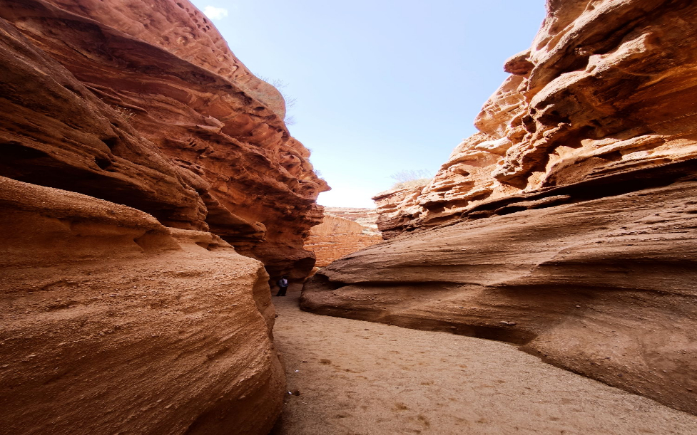 游客“打卡”柯坪县启浪乡大湾沟景区。 王拓 摄